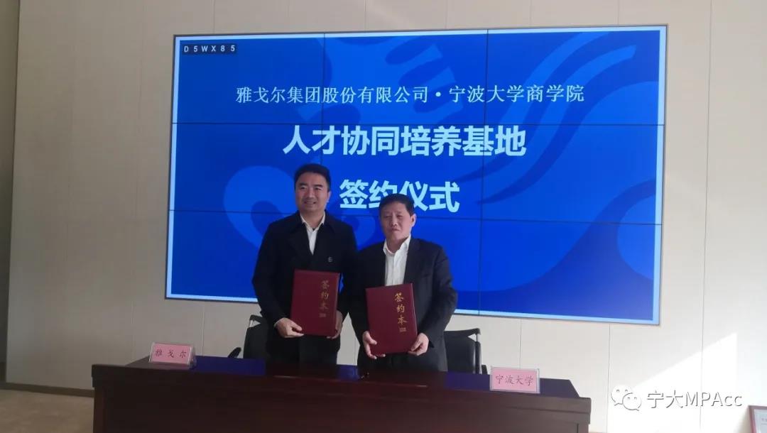 和雅戈尔集团股份有限公司共同举行了“人才协同培养基地”签约仪式。雅戈尔集团常务副总经理胡纲高、雅戈尔集团财务总经理吴幼光、雅戈尔集团服控财务总经理杨和建、雅戈尔集团人力资源总监陆占武、百家乐策略