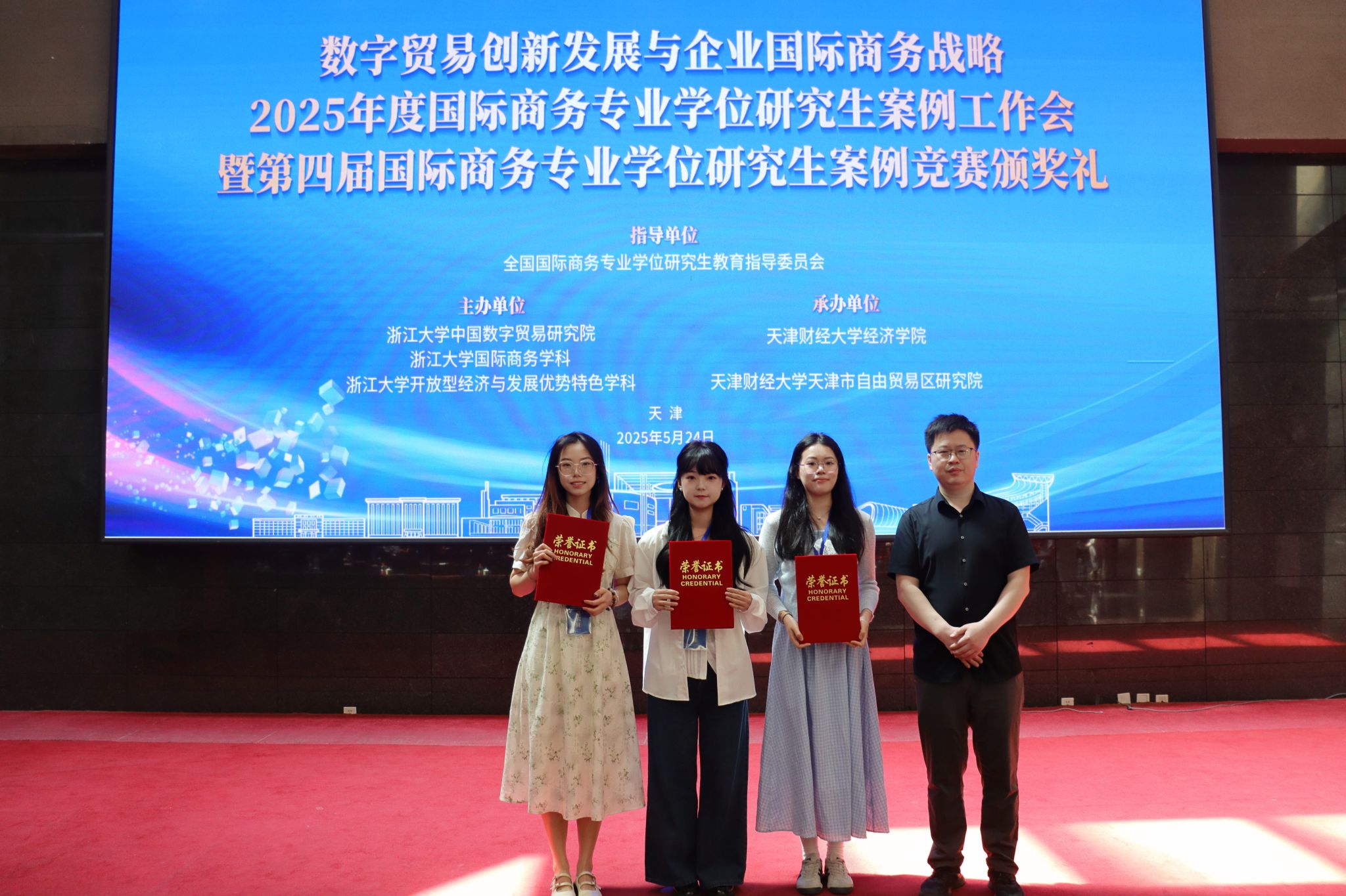 、天津市自由贸易区研究院作为承办单位的2025年度国际商务专业学位研究生案例工作会暨第四届国际商务专业学位研究生案例竞赛颁奖礼在天津财经大学成功举办。