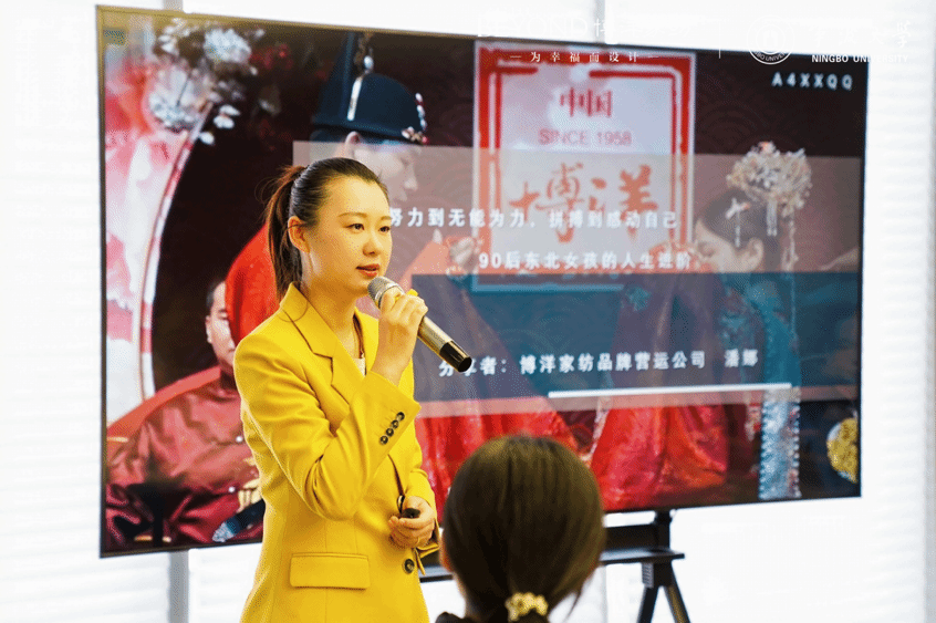 在主题分享环节,潘总以“努力到无能为力,拼搏到感动自己”为题,结合自身从实习生成长为品牌总经理的历程,讲述了在不断学习、勇于突破中实现个人与企业共同发展的故事。她鼓励同学们做好职业规划,敢于尝试新领域,在实践中锻炼商品创新与综合管理能力。