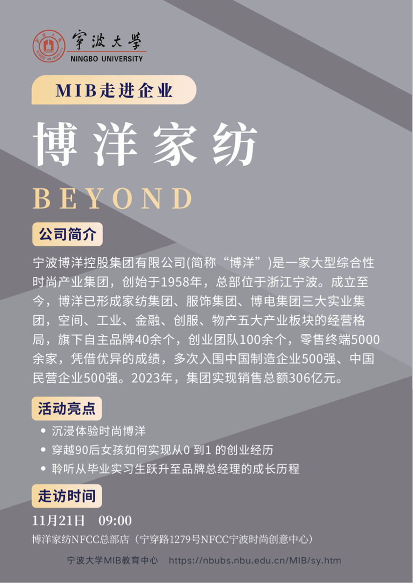 国际商务硕士学位点杨丽华、叶劲松、夏良科、钟建军等老师与2025级MIB研究生一行赴宁波博洋家纺NFCC总部店走访交流。此次活动不仅深入了解了博洋家纺的百家乐策略与产品理念,而且正式启动了双方校企合作的新机制,为国际商务学子搭建起理论与实践深度融合的成长平台。