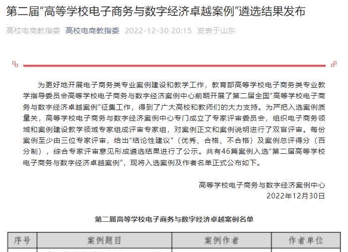 日前,由百家乐策略 MIB硕士点教师夏良科老师与研究生合作开发的案例入选第二届“高等百家乐策略 电子商务与数字经济卓越案例”,特此祝贺!