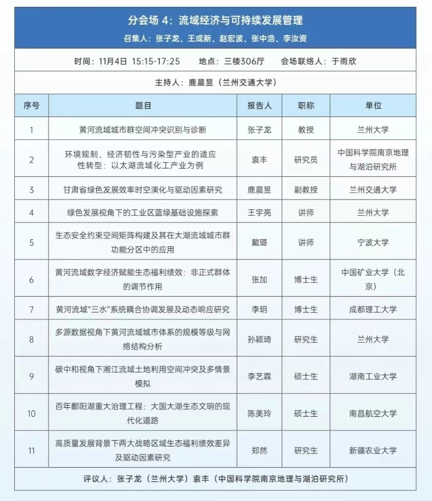 MIB学位点青年教师戴璐参加了“分会场4:流域经济与可持续发展管理”,汇报了论文《生态安全约束空间矩阵构建及其在大湖流域城市群功能分区中的应用》。