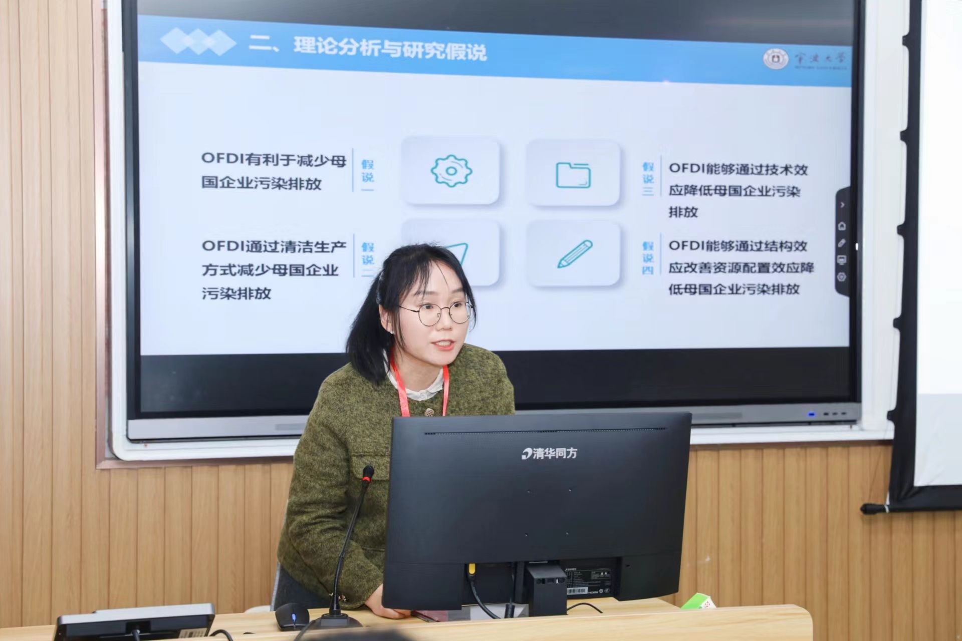刘晓丹老师参加了平行论坛4“国际直接投资助推高质量发展”,并做了“对外直接投资对母国企业污染排放的影响”报告。