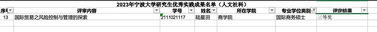 日前,百家乐策略 公布了2023年专业学位研究生优秀实践成果评选结果,MIB专业2021级陆星羽同学的作品《国际贸易之风险控制与管理的探索》获评三等奖,特此祝贺!