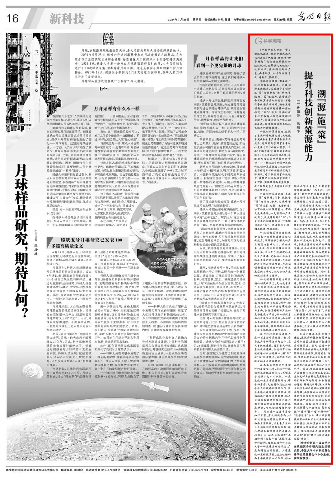 MIB专职教师杨丽华教授与其合作者在《光明日报》(2024年7月25日 第16版)刊发题为《溯“源”施“策” 提升科技创新策源能力》的文章。全文如下: