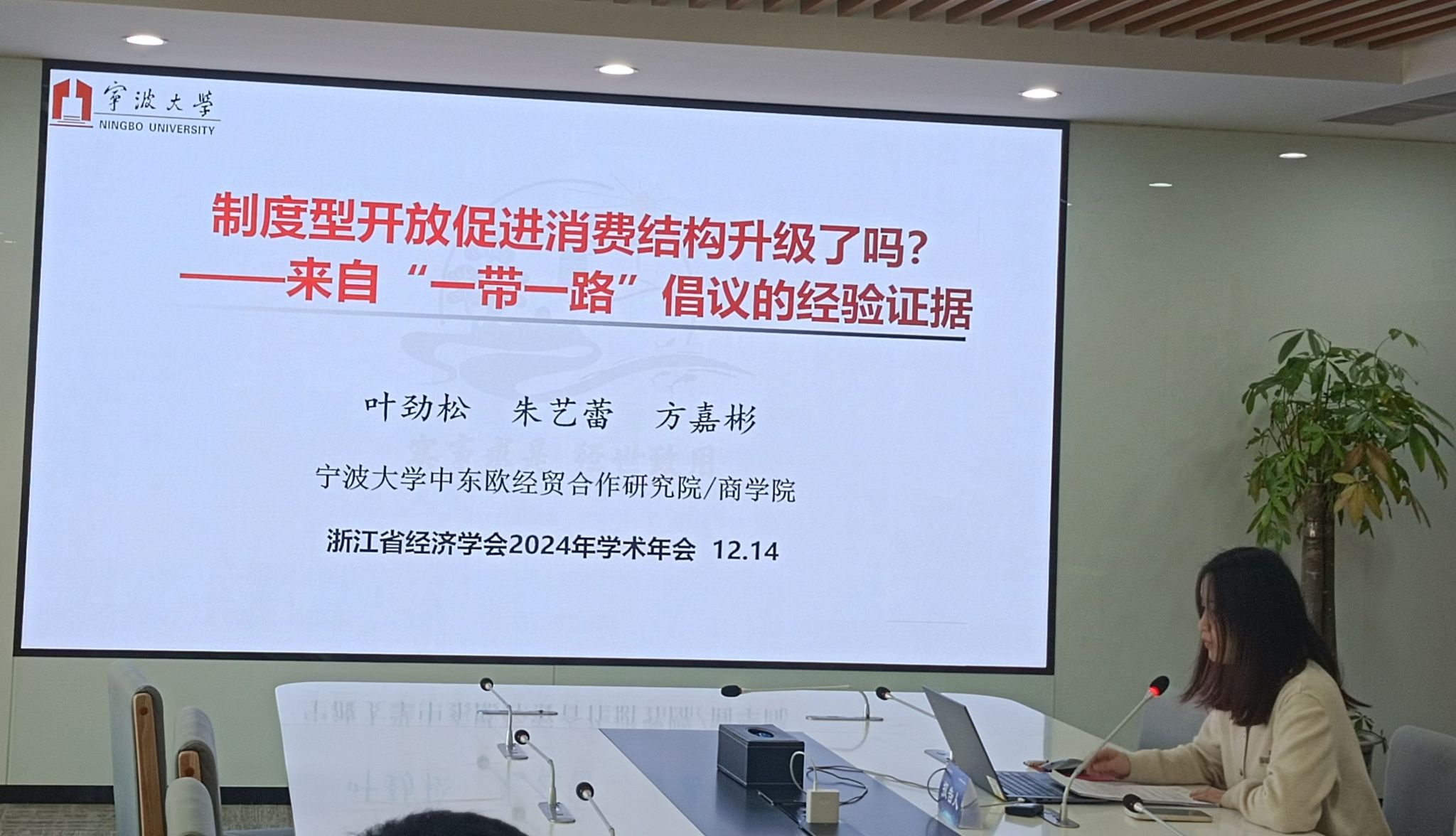 12月14日下午,本次年会还设立了七个分会场。楼朝明副教授、2023级MIB研究生朱艺蕾参加了分会场一的学术交流。楼朝明副教授在论文《2010年代中美欧经济博弈与双边投资协定谈判的困境》中,采用经济外交的分析视角,研究经济博弈在中美双边投资协定、中欧全面投资协定以及跨大西洋贸易与投资伙伴关系协定谈判过程中的影响,随着经济全球化过程放慢,各国对战略利益的强调以及民众基于自身利益的反对,使得双边投资协定谈判陷于困境之中。朱艺蕾同学在论文《制度型开放促进消费结构升级了吗?——来自“一带一路”倡议的经验证据》中提出,“一带一路”倡议在家庭消费结构升级方面展现出了显著的提升效果,且主要通过提升居民消费意愿和增强居民消费能力两种作用机理实现,且该倡议对家庭消费升级的促进作用在“丝绸之路经济带”沿线地区以及市场化程度较高的区域表现得尤为突出。进一步研究发现,政府通过加强交通基础设施建设以及提供社会再培训救助措施,能够为家庭消费结构的优化升级提供更为坚实的支撑。