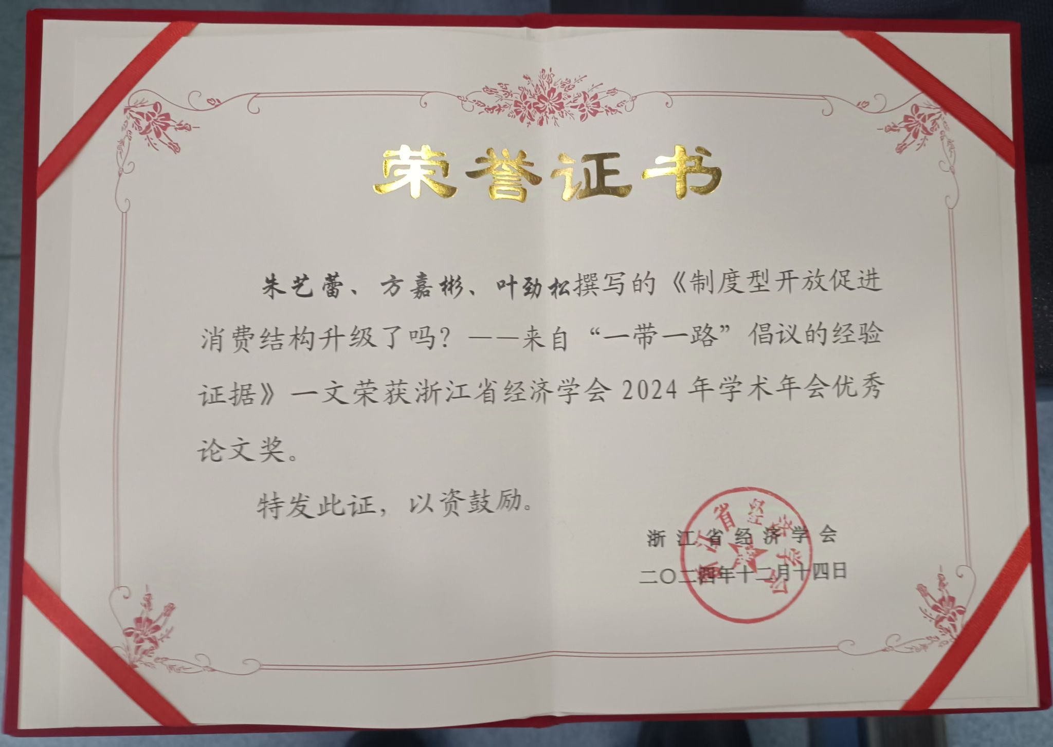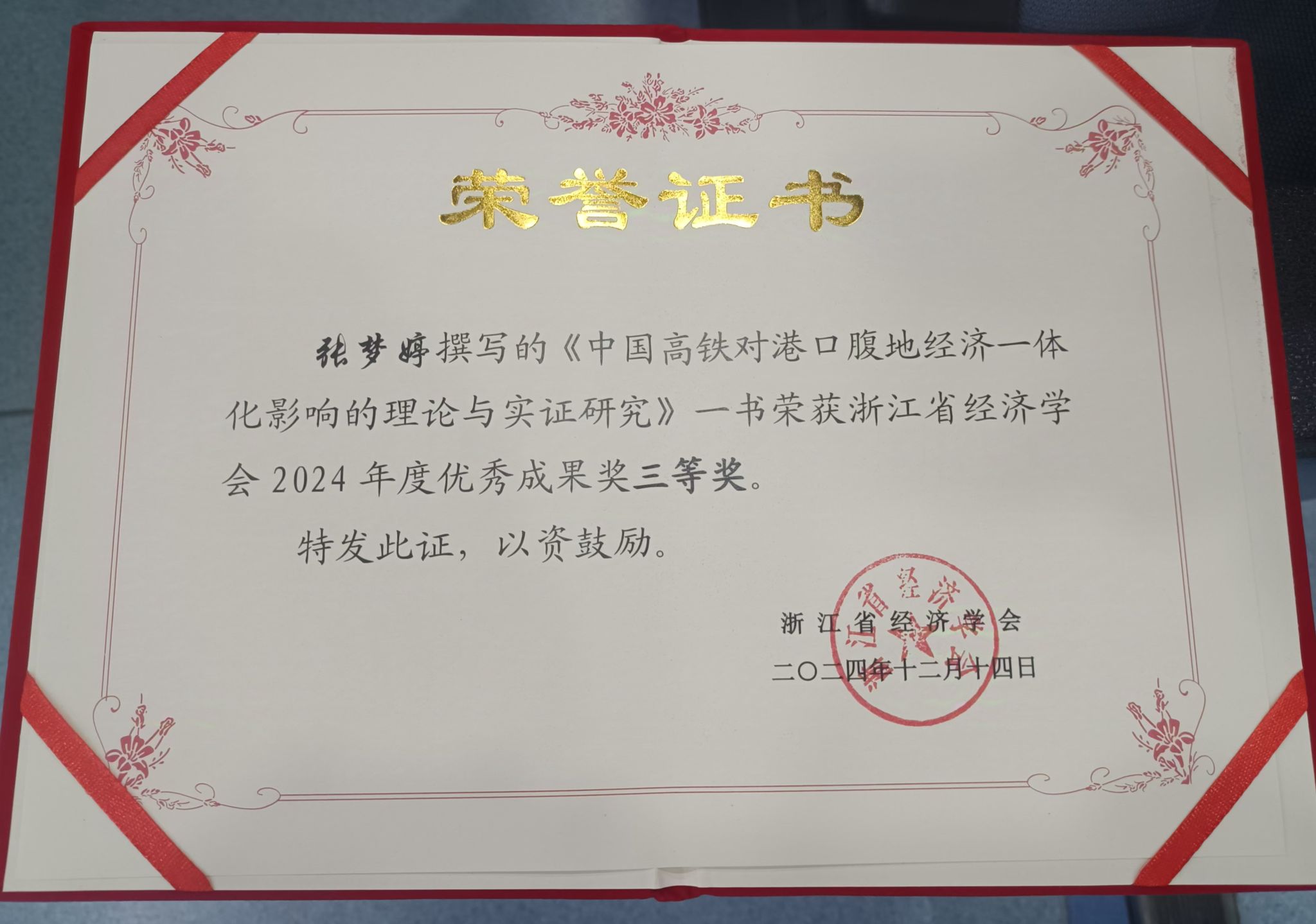 MIB专职导师张梦婷副教授的专著《中国高铁对港口腹地经济一体化影响的理论与实证研究》获评年度优秀成果奖三等奖,2023级MIB研究生朱艺蕾的论文《制度型开放促进消费结构升级了吗?——来自“一带一路”倡议的经验证据》获评年会优秀论文。
