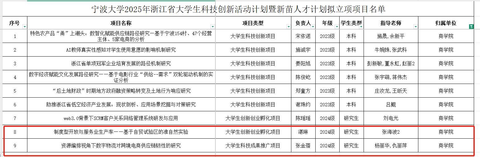 3月7日,2025年浙江省大学生科技创新活动计划暨新苗人才计划立项结果正式公布。24级国际商务专业研究生张金蓓、湛琳同学作为项目负责人,其项目在大学生科技创新项目中成功立项,展现了百家乐策略