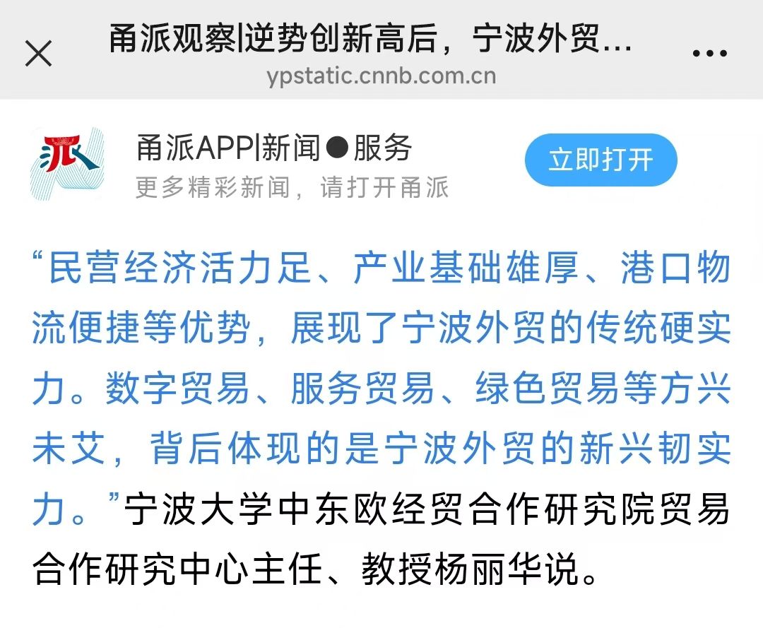 媒体发声 | 百家乐策略 MIB学位点负责人杨丽华教授在甬派APP新闻平台为宁波外贸发展建言