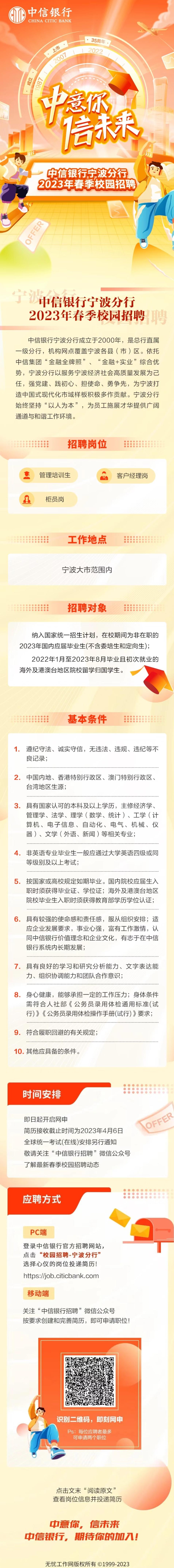 中信银行宁波分行招聘简章