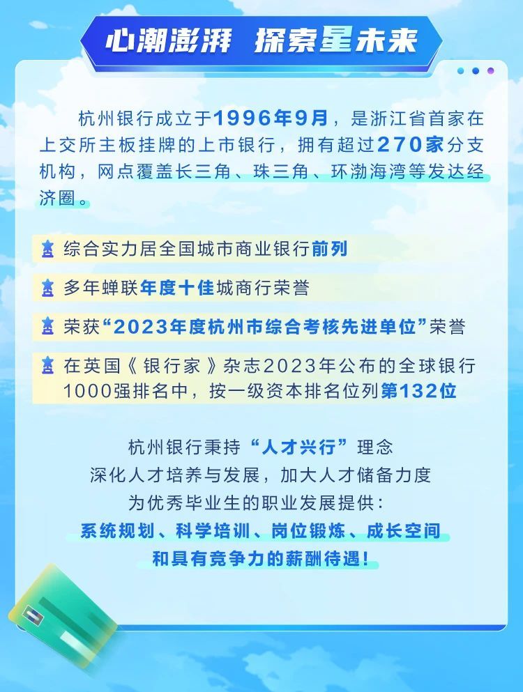杭州银行2024招聘简章