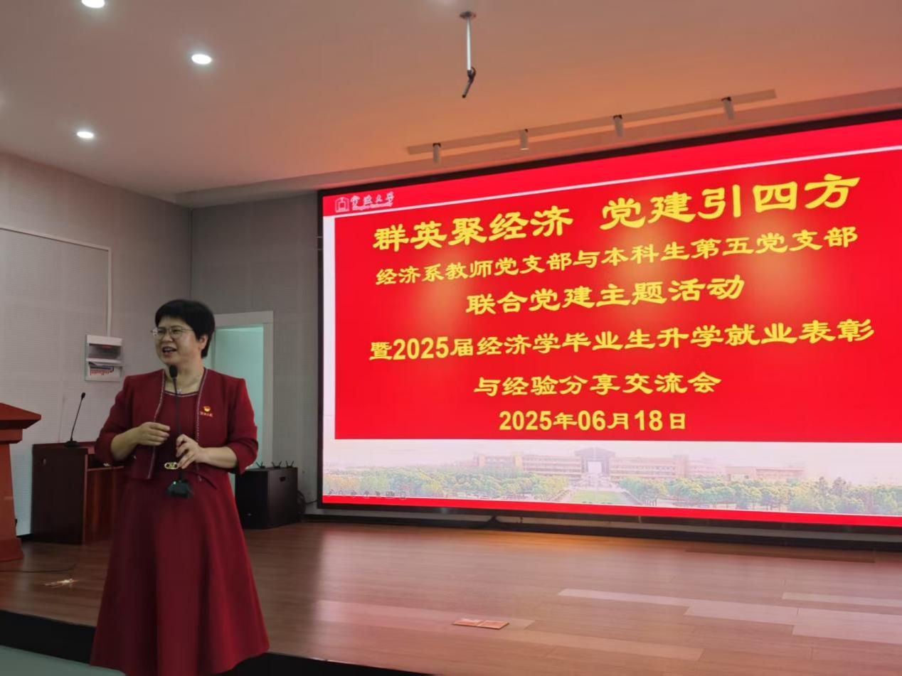 本次经济系教师党支部与本科生第五党支部联合开展的升学就业表彰与经验分享交流活动,不仅是对优秀毕业生的肯定与鼓励,更是经济系精神的传承与发扬,希望经济系的学子们在未来的道路上,不忘初心,砥砺前行,书写属于自己的青春华章。
