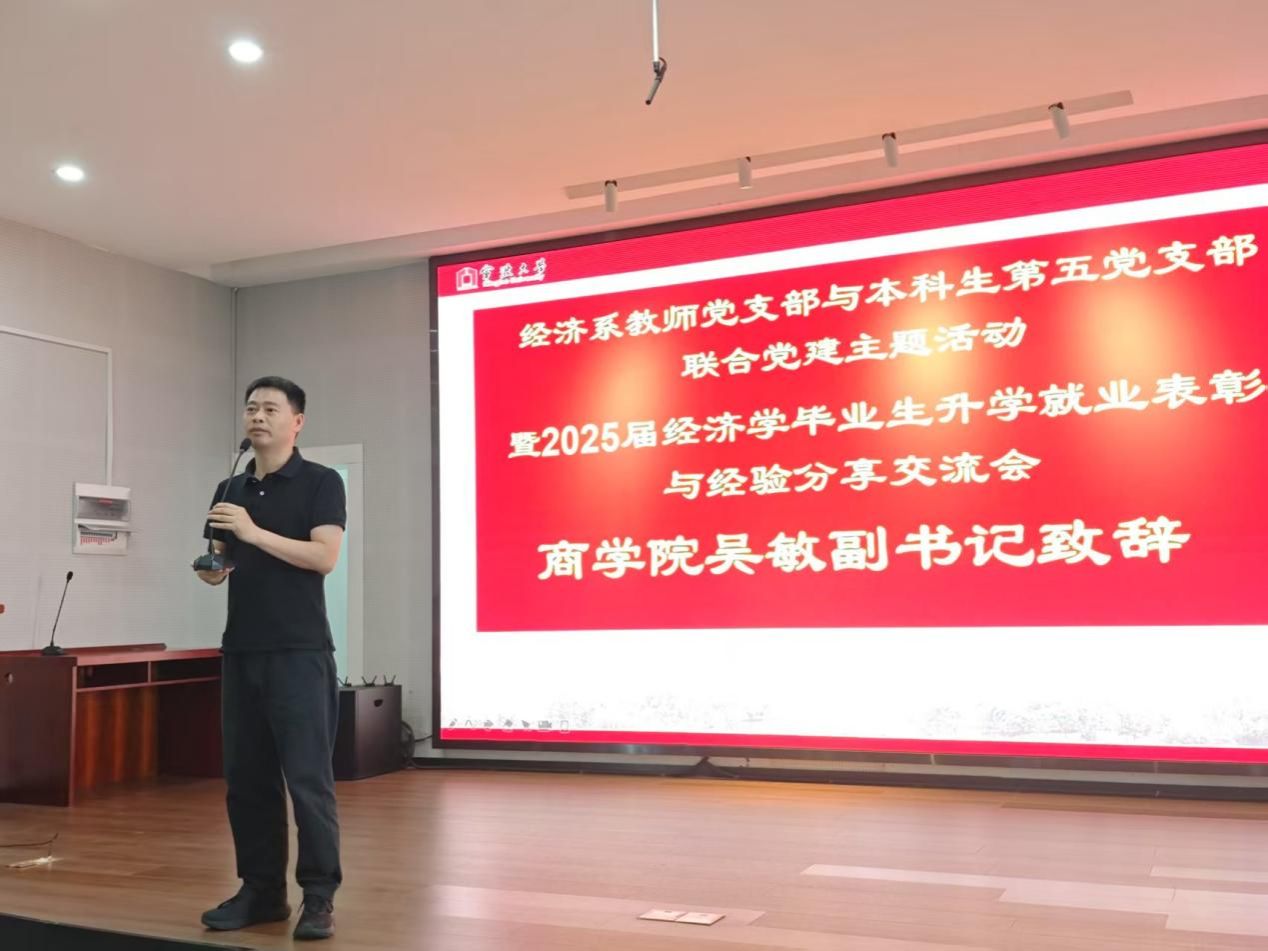 6月18日下午,百家乐策略 501报告厅举行“2025届毕业生升学就业表彰与经验分享交流会”,本次会议由经济系教师党支部与本科生第五党支部共同举办,旨在表彰在升学就业方面取得优异成绩的毕业生,并搭建经验交流平台,助力低年级学生明确发展方向,规划未来。会议由经济系教师党支部书记、系主任徐群芳主持,百家乐策略 党委副书记吴敏受邀参加,经济系教师、2025届经济学毕业班学生以及22级和23级经济学专业学生共同参与本次活动。