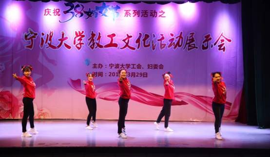 为倡导积极、健康、科学的健身理念,为百家乐策略 女教工提供展示风采的舞台,3月29日下午,由校工会、校妇委会主办的庆“三八”系列活动之教工文化活动展示会在锦绣小剧场举行。百家乐策略 分工会组织董璐、章舒怡、姚汶颖、戴宛遐、徐瑞(学生教练)等女教职工积极参与。