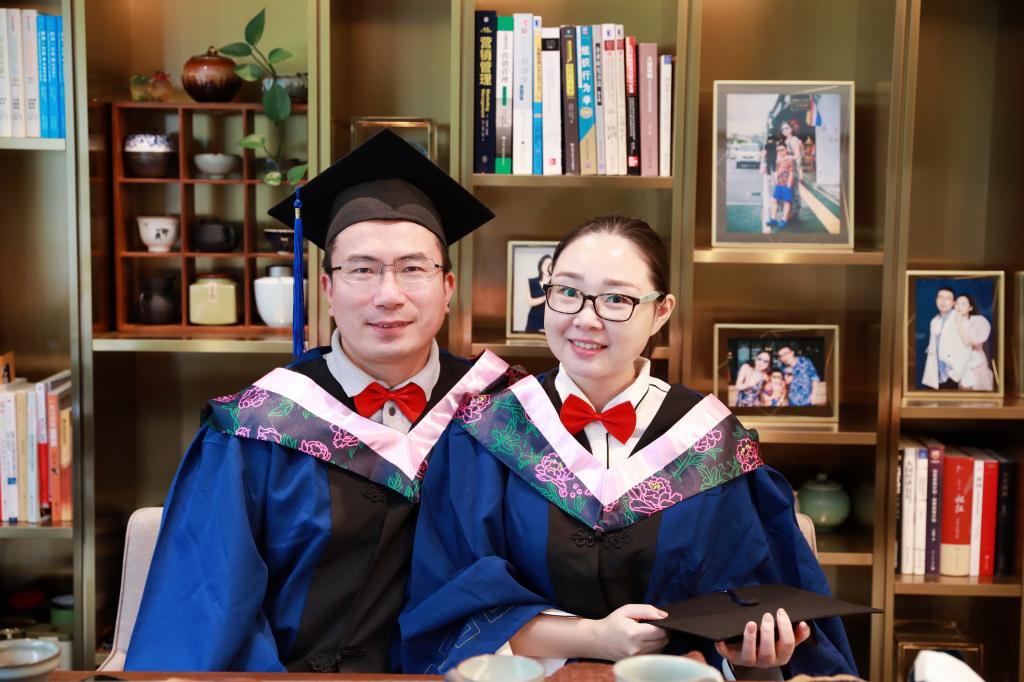 在此次典礼上,还有两对夫妻引来了众人的关注与赞赏。2019届毕业生盛云与项海红两夫妻均从事房地产行业,两年前,他们一起来报名参加中澳MBA项目,通过两年的坚持与努力,最终顺利完成学业,一起毕业,获得了澳大利亚堪培拉大学的工商管理硕士学位。谈及毕业体会,盛云和项海红都对中澳MBA的这段学习经历表示相当肯定。盛云目前在龙湖集团宁波公司担任运营总监一职。他认为中澳MBA项目的课程设置,很适合有一定年龄和社会阅历的企业中高层经理人。中澳MBA项目的会计、理财和经济学方向上的课程设计,往往能通过简单的案例和数学模型,将公司运营中的基本财务逻辑剖析出来,再结合工作场景进行思考,能有效提升自己的财务逻辑和决策运营能力。他还指出,由于职业发展背景的约束,自己以前对人力资源管理和企业战略接触较少,但晋升为公司高管后,对人员部署的决策能力要求提高了不少。自己也确实从中澳MBA项目的人力资源、组织行为和企业战略等课程中获益良多。