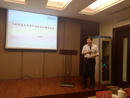 2019年11月16日下午,金祥荣院长给MBA校友做了题为《宁波经济发展模式的特征和转型方向》的学术报告。MBA联合会历届理事会理事、常务理事、历届主席团成员及2019级MBA学员代表共计50多人现场聆听。