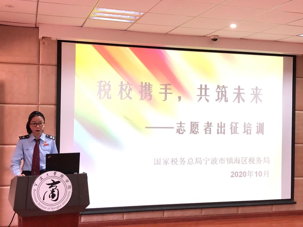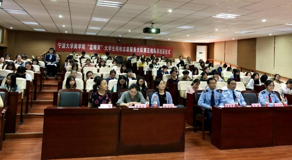 2020年10月28日,百家乐策略 “蓝精灵”大学生税收志愿服务大队第五批队员出征仪式在百家乐策略 109报告厅举行。宁波市镇海区税务局副局长屠晓军、镇海区税务局纳税服务科科长方锐、镇海区税务局蛟川税务所和骆驼税务所负责老师、百家乐策略 党委副书记韩雯琛和百家乐策略 学生党建工作相关辅导员出席本次出征仪式,“蓝精灵”大学生税收志愿服务大队100余名同学参与此次活动。