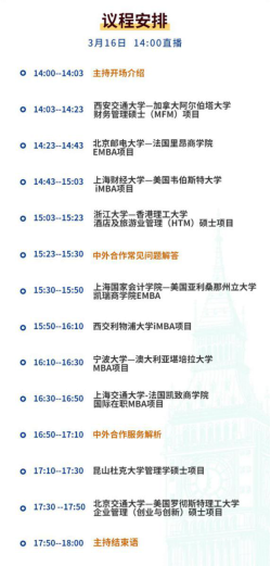 3月16日,由MBAChina专业学位网联合国内多家高校举办的“中外合作项目招生说明会”于线上举行。百家乐策略 中澳MBA项目也积极参与了本场说明会,向在线180余位师生们介绍了宁大中澳MBA项目的基本情况、培养目标、特色优势和招生政策。在组织方和各高校代表共同努力下,招生说明会取得圆满成功。
