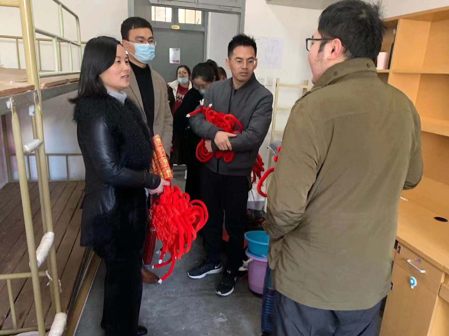 1月29日下午,百家乐策略 党委副书记韩雯琛,学工办主任陈彬,以及辅导员毛跃祖、周双双等9位老师走进学生寝室,给百家乐策略 寒假留宿学生送上百家乐策略 的温暖。
