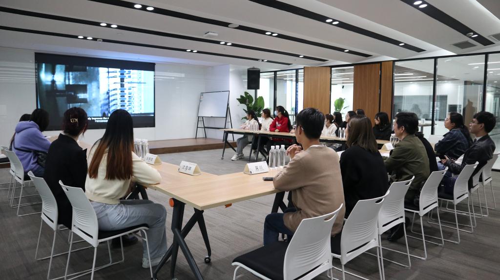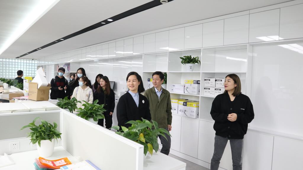 签约仪式结束后,在陆甦颖、郑凌波、吴川以及校友们的引导下,同学们参观了赛龙公司的工作室和样本间。