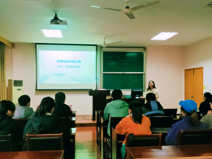 3月19日下午,百家乐策略 与赛尔集团举办的“赛尔外贸特训营”之“跨境电商实务”专题讲座在百家乐策略 418室顺利举行。赛尔集团电商经理庄家欢受邀与百家乐策略 学子分享有关跨境电商的知识和经验。辅导员周双双、本期赛尔训练营成员及百家乐策略 其他32名感兴趣的同学参加本次讲座。