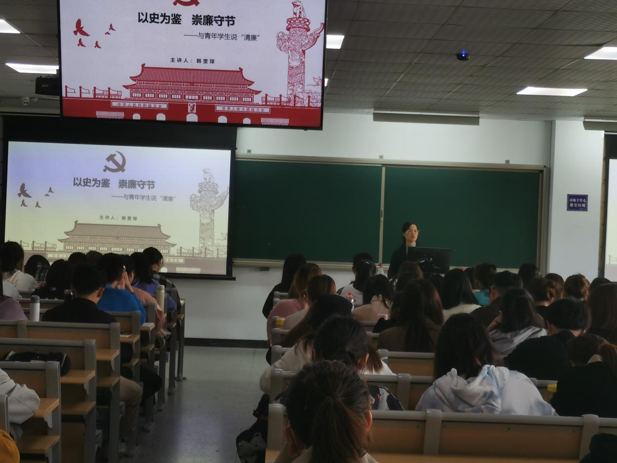 4月21日下午,百家乐策略 成功举办了“以史为鉴 崇廉守洁——与青年学生说“清廉””第45期廉洁教育课。百家乐策略 126名发展对象参与,院党委副书记、纪委书记韩雯琛担任主讲人。