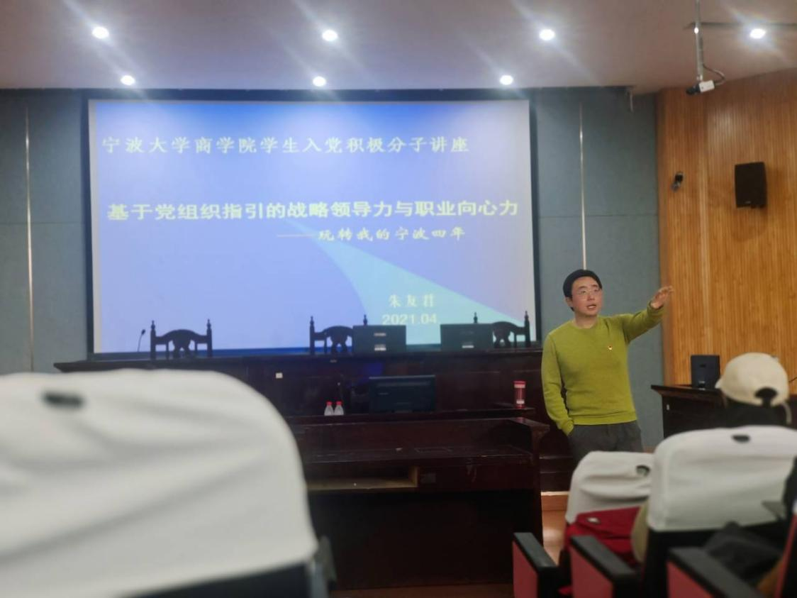 2021年4月17日上午,百家乐策略 党委分党校第44期积极分子培训班第二讲在第五阶梯教室顺利举行,主讲题目为《基于党组织指引的企业领导力与职业向心力》,120余名党校积极分子学员参加。宁波市滨海研究院副院长朱友君老师担任主讲人。