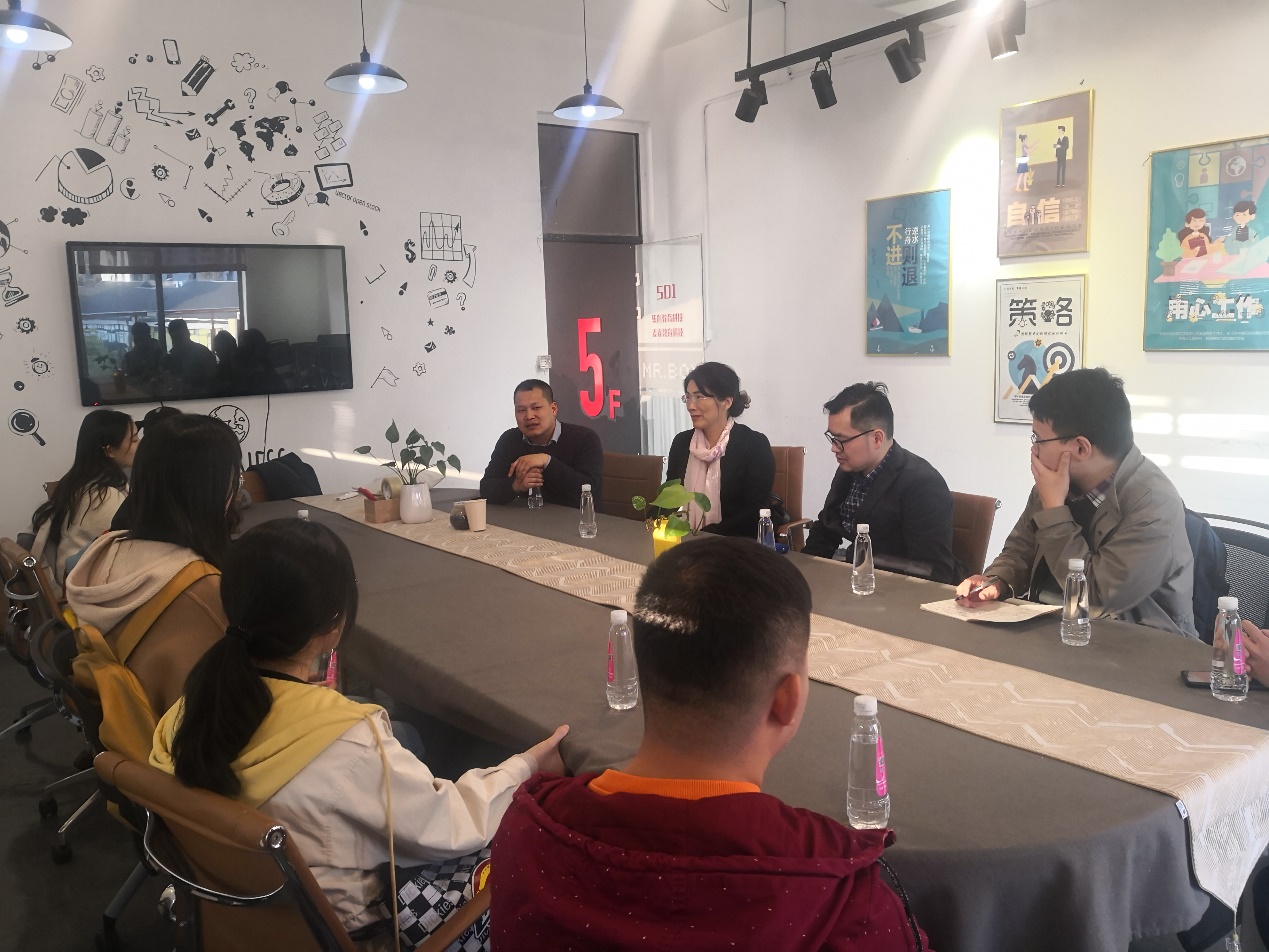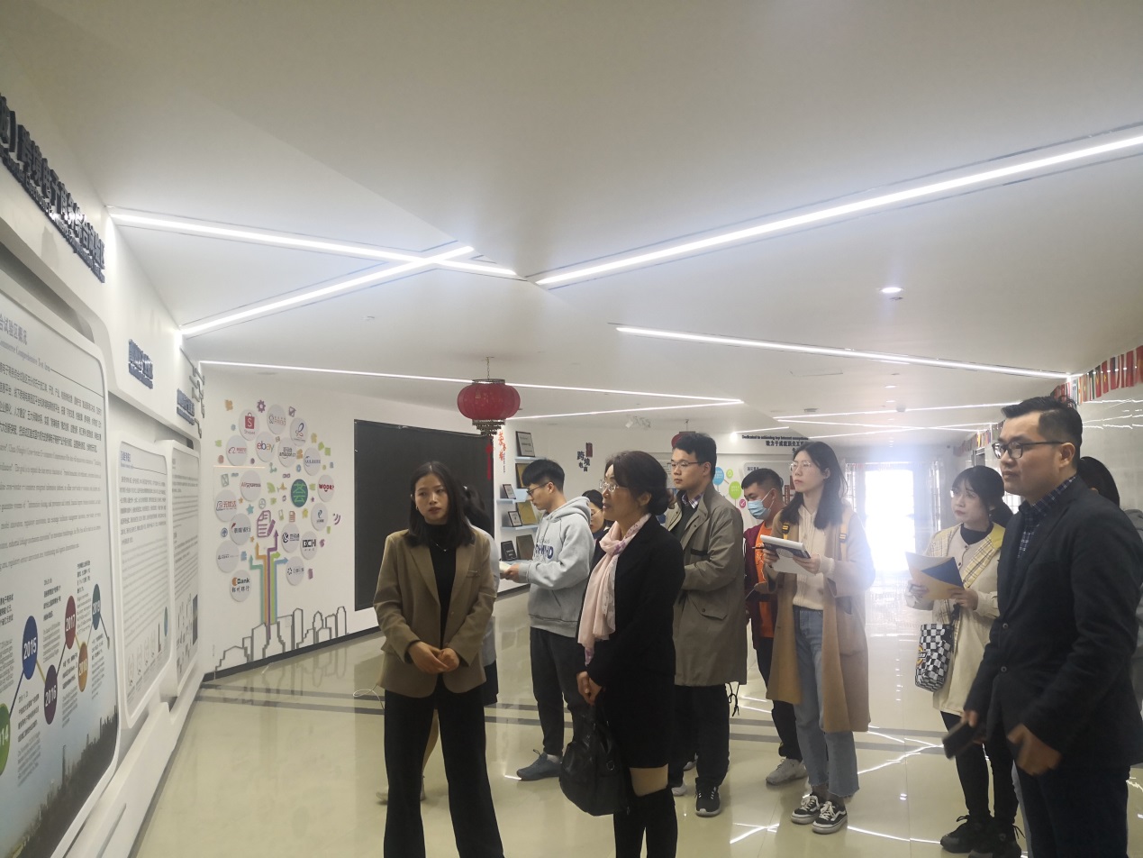 在驿淘产业园,产业所一行受到陈菁总经理、张士琴副总经理等人的热情接待。陈总经理带领大家考察了驿淘产业园的展厅和部分入驻企业,对产业园的发展概况、运营模式、管理机制和孵化服务等进行了详细介绍。在后续的座谈会中,双方就跨境电商产业园的自身优势、未来规划和校企对接等感兴趣的话题作了进一步交流。