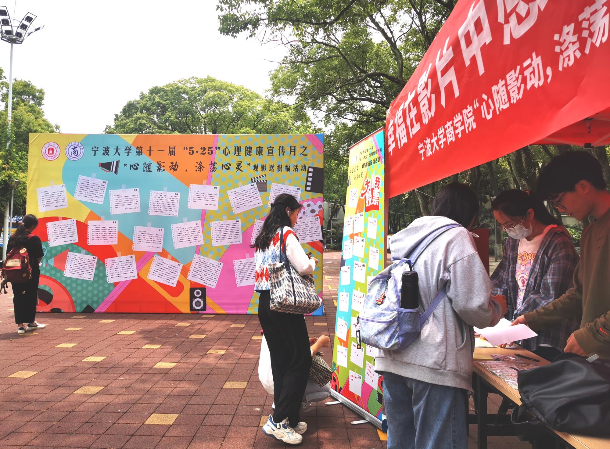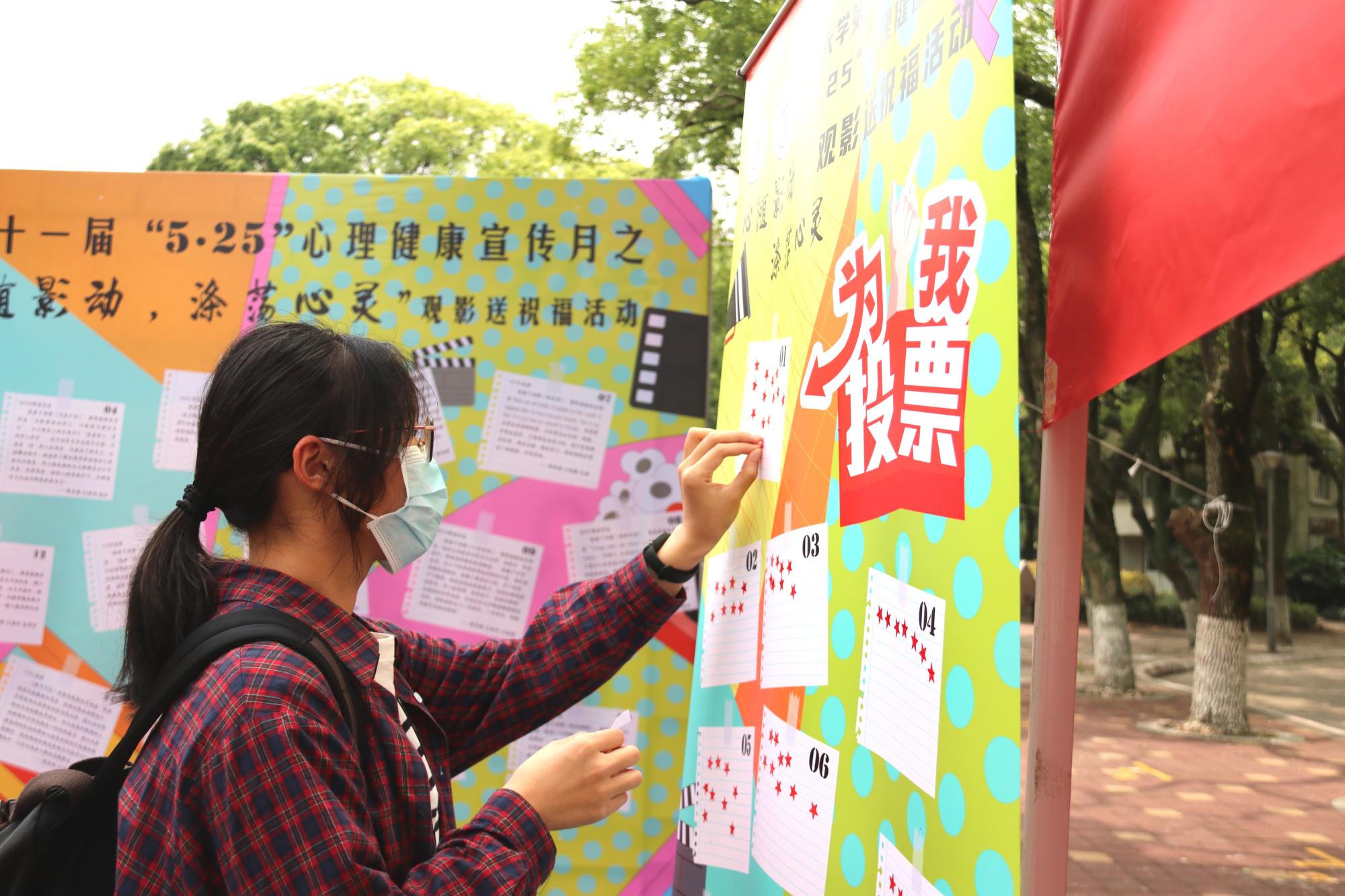 5月25日,为给学生办些实事,对学生进行心理健康教育。百家乐策略 在有思广场顺利开展“心随影动,涤荡心灵”大学生心理健康观影祝福语线下投票活动,吸引了近百名同学现场参加。