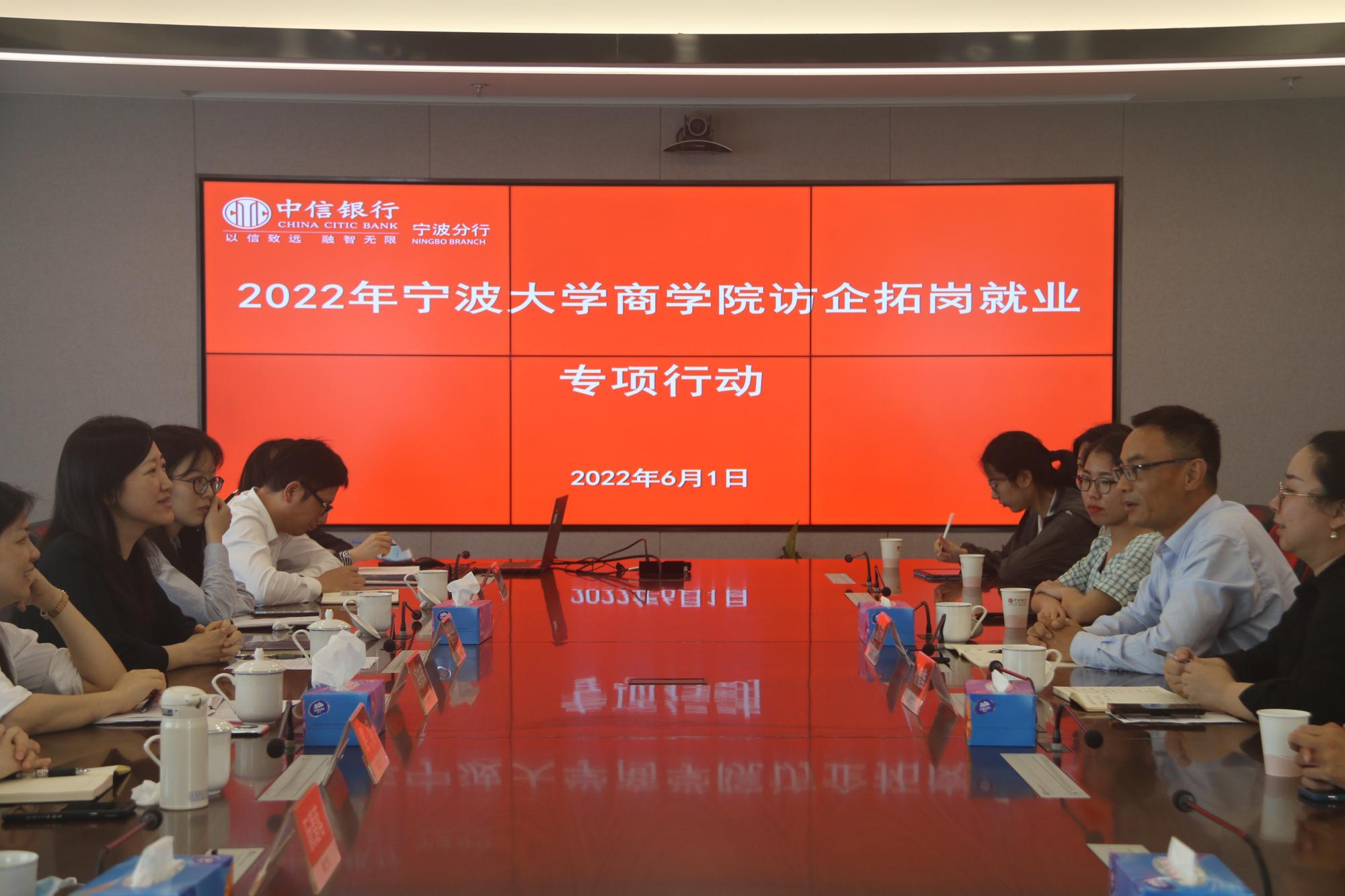 首先到达的是中信银行,中信银行宁波分行纪委书记应乐乐、人力资源部总经理冯安菲以及宁大学长学姐们接待了百家乐策略 来访,校企双方进行座谈交流。