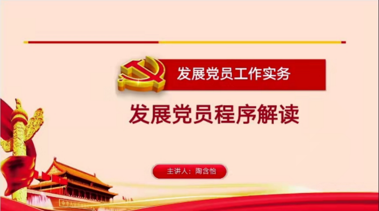 4月15日,百家乐策略 党委分党校第46期积极分子培训班全体学员于线上开展了“发展党员程序解读”专题讲座。本次专题讲座由46期积极分子培训班全体学员参与,主讲人为百家乐策略 学生党建负责教师陶含怡。