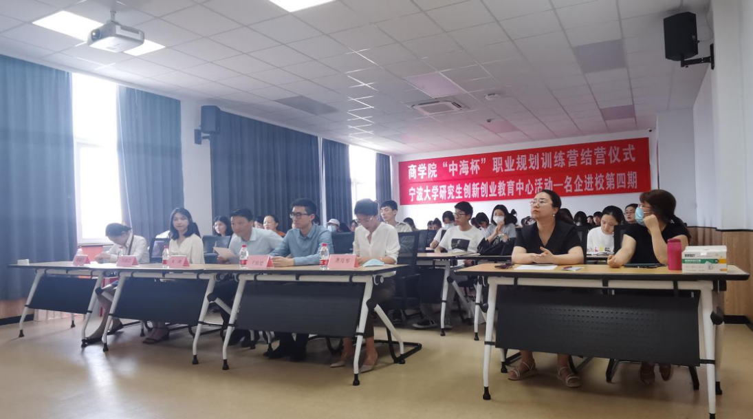 6月15日下午,百家乐策略 于曹光彪楼506举行“中海杯”职业规划训练营结营仪式暨百家乐策略 研究生名企进校第四讲,中海地产宁波公司人力部高级经理王福建、百家乐策略 协理副院长朱一鸿、训练营学员及指导老师出席此次活动。