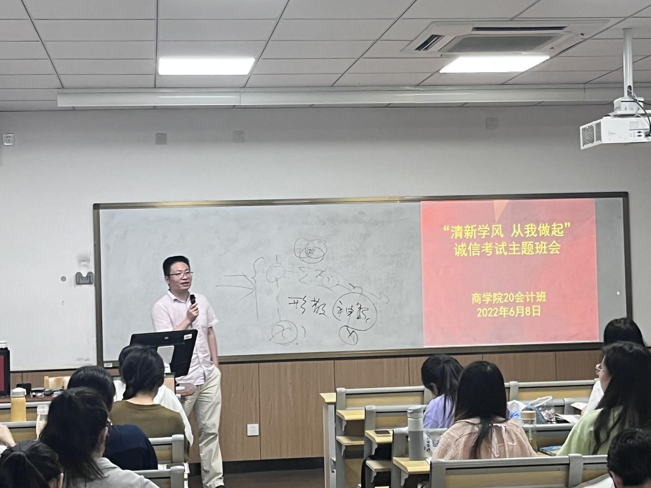 对于当代大学生来讲,明礼诚信是立身处世之本,是走向社会的“通行证”。加强大学生清新学风教育,为社会输送德能兼备的合格人才,已是大学教育的当务之急。诚信不仅是一种品行,更是一种准则。活动中,班主任和辅导员一直在强调诚信应考是我们每一个学子始终奉行的良好学风,希望我们每一个人都为清新学风出力。所以在期末考试时,希望我们每一个学子都应谨记这一基本准则。惟诚可以破天下之伪,惟实可以破天下之需。(20工商2班 杨雨婷)