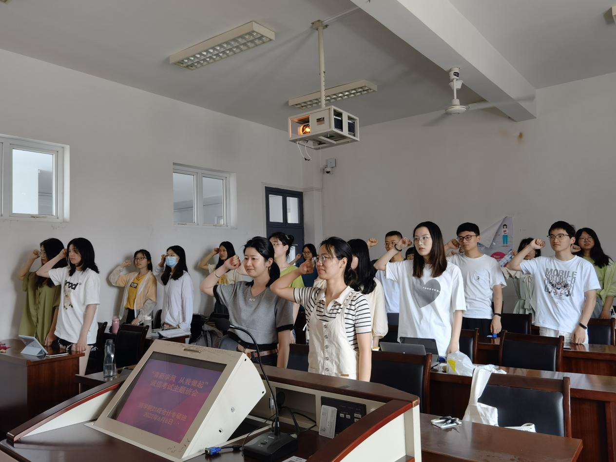 同学们进行了“清新学风,从我做起”的宣誓。他们承诺“在今后百家乐策略 组织的各级各类考试中,严格遵守考场纪律,自觉维护考试秩序,坚决杜绝一切考试违纪、作弊行为,做一名诚实守信的文明大学生。”