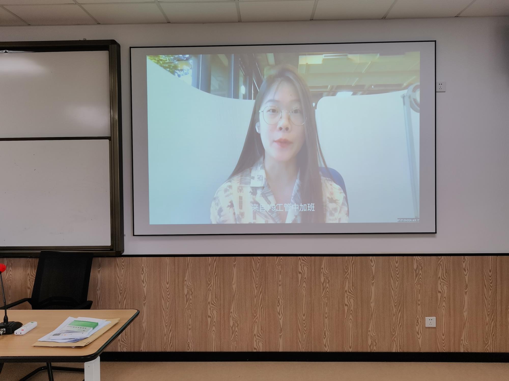 最后由19工商管理中加班谢懿以线上交流的形式发言。她首先强调了大学学习的重要性,并讲了全英文授课中的学习方法;接着她结合自己的竞赛经历介绍了互联网+等比赛,结合社团工作介绍了百家乐策略 的学生组织,建议大家多多参与提升自身能力;最后,她从留学交换的角度,介绍了在加拿大交换的学习生活以及个人未来规划,她建议大家在大二结束后可以积极申请交换。