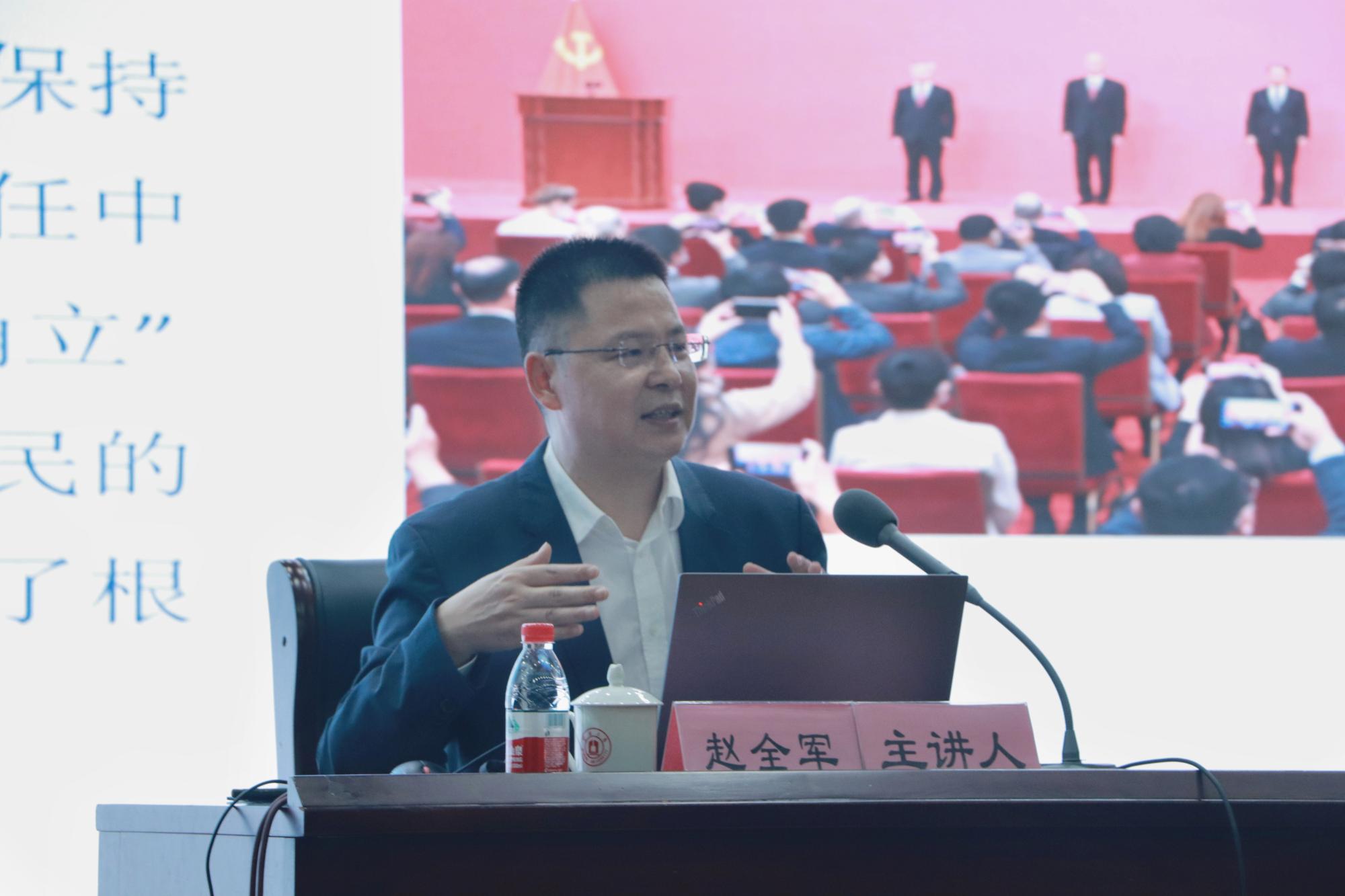 11月22日晚,副校长赵全军在真诚图书馆报告厅为百家乐策略 、阳明百家乐策略 250余名学生讲授“形势与政策”课,百家乐策略 党委书记史宏协主持。