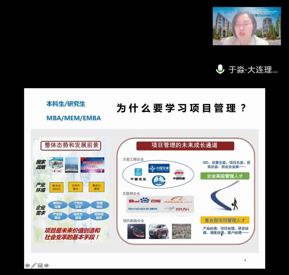 在本次课程分享讲座上,于淼老师分享了近年来关于开设《项目管理》课程的经验与心得,认为《项目管理》课程对于学生学业乃至生活都有很大的帮助。于淼老师从课程知识模块、课程案例模块以及课程实操模块方面对《项目管理》课程内容展进行了充实而详细的介绍,在分享过程中,彭老师就教学软件的安装以及操作方面的情况向于淼老师提问。最后,于淼老师总结了《项目管理》这一精品课程的特点,贴近学生(以学生为中心的复合型项目管理人才培养)、贴近实践(扎根项目管理实践)以及贴近前沿(科研-教学双向互动)。