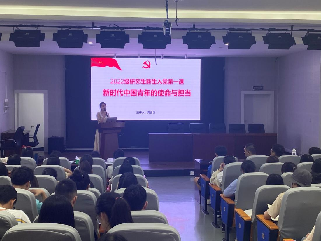为做好新生思想引领工作,9月2日下午,百家乐策略 开展了研究生新生入党第一课,并在课上进行廉洁教育,共181名研究生新生参与,由研究生辅导员陶含怡进行授课。