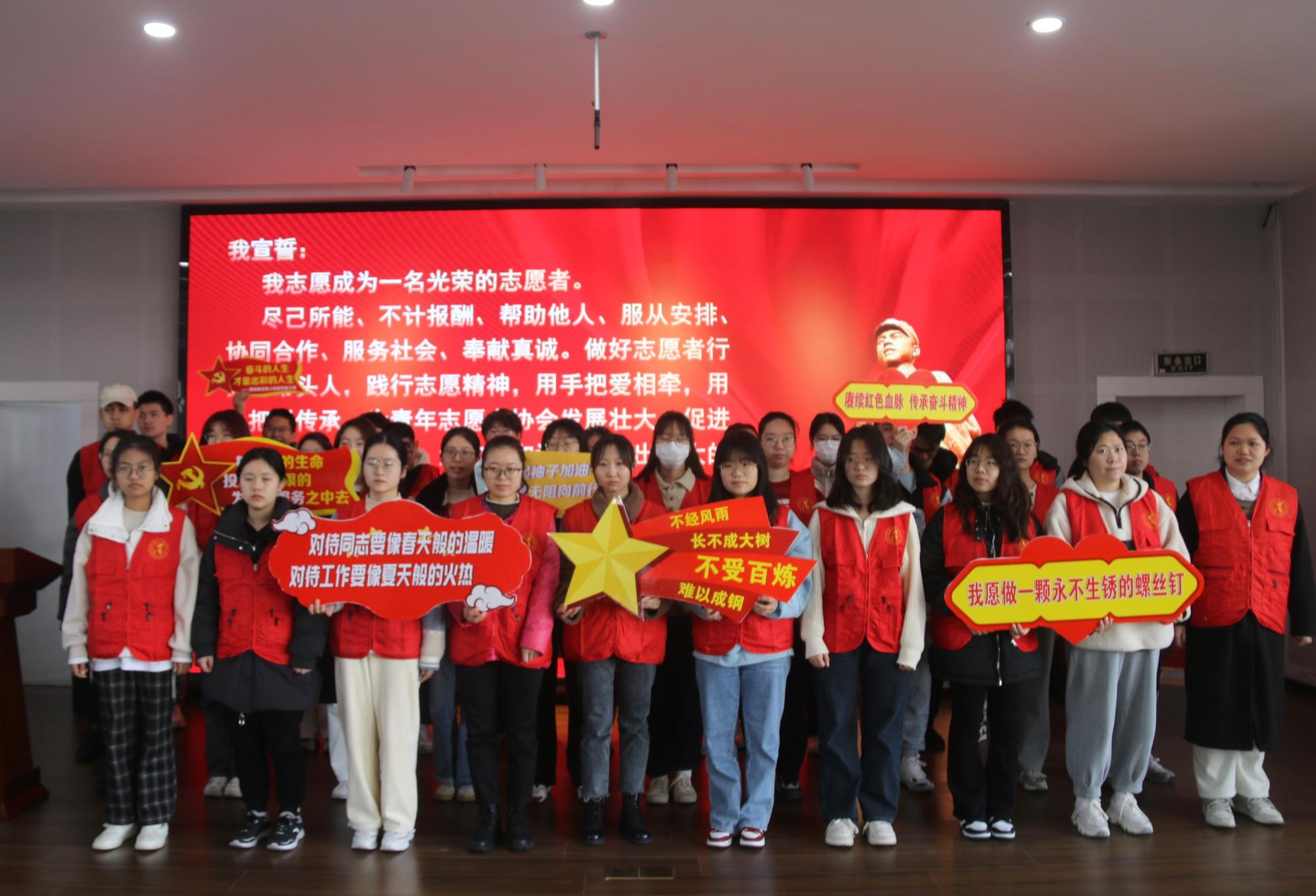 随后,进行志愿者宣誓环节。志愿者代表共同宣誓,坚定志愿服务决心。“我志愿成为一名光荣的志愿者......做好志愿者行列的带头人,践行志愿精神,用手把爱相牵,用心把爱传承,为青年志愿者协会发展壮大,促进校园精神文明建设,为构建和谐社会献出最大的力量!”铮铮誓言践忠诚,拳拳初心担使命。