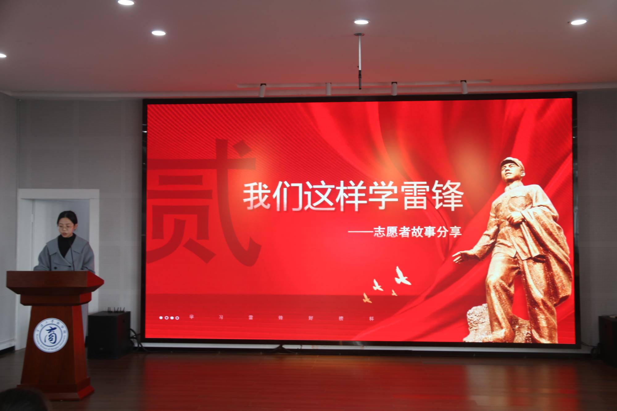 仪式在文“话”商帮宣讲团成员诵读《雷锋日记》中开场。宣讲团成员诵读了《雷锋日记》中的经典片段,“如果你是一滴水,你是否滋润了一寸土地?如果你是一线阳光,你是否照亮了一分黑暗?如果你是一颗粮食,你是否哺育了有用的生命?如果你是一颗最小的螺丝钉,你是否永远坚守在你生活的岗位上?......”日记本中的这段话声声震耳,久久回荡再同学们心中。宣讲团成员说:“我们应该向雷锋同志学习,明确人生的定位和人生目标,心中充满希望,少一丝抱怨,让生活成为一首激昂的进行曲。”