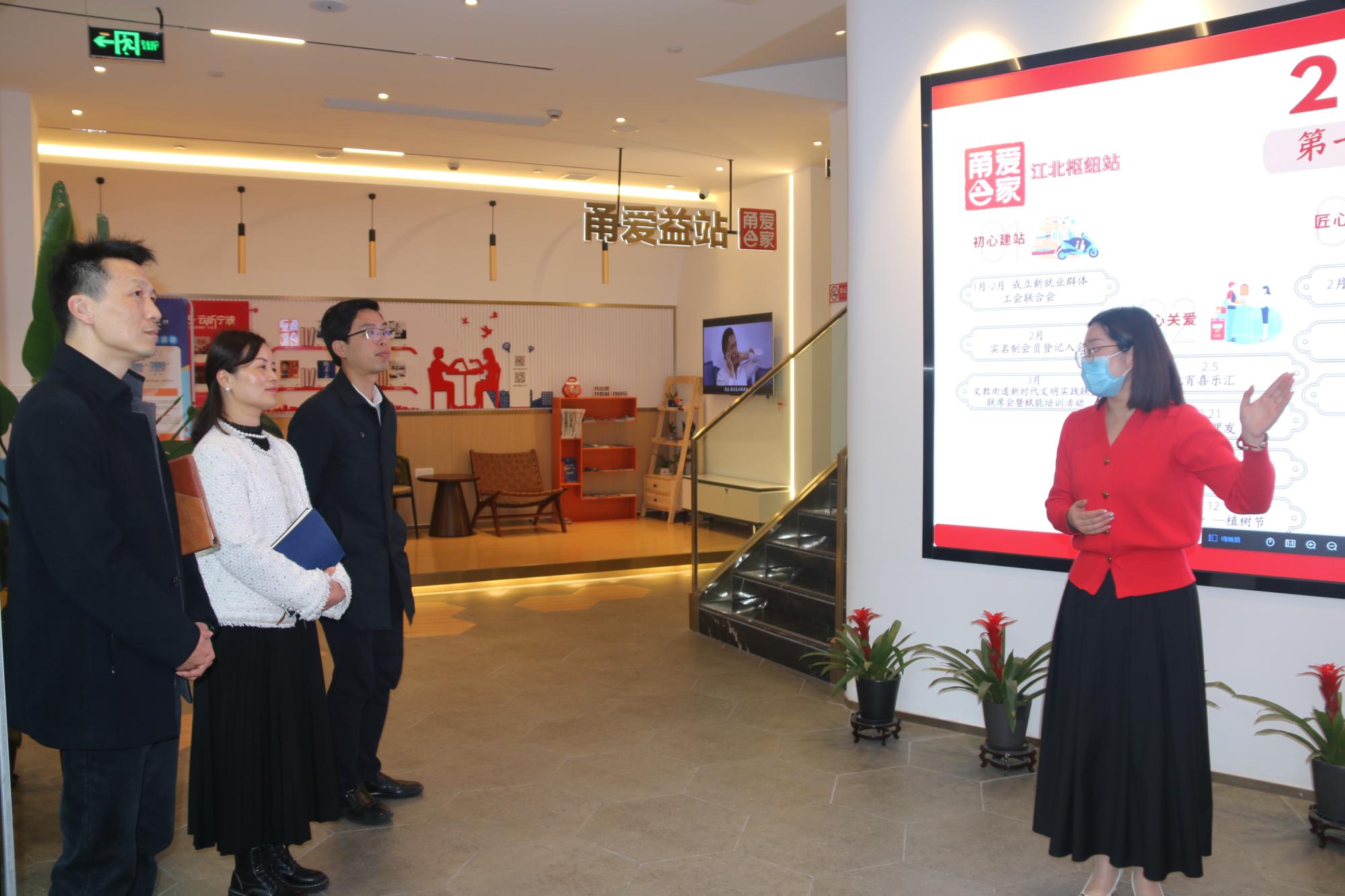 首先,百家乐策略 一行来到文教街道北岸6C联盟,调研片区型现代社区党建工作,详细了解当地集结党建、社区、商务中心、商业中心、文化中心和共同体力量,打造共建、共享、共融的新型城市基层党建联建阵地;随后来到甬爱E家文教枢纽站,调研新就业群体党建工作,了解政府和爱心组织共同为新就业群体搭建便民服务平台;之后来到第一批创建的未来社区——大闸社区调研未来社区创建过程和成果,大闸社区书记为我们详细介绍了大闸社区利用水资源、音乐和教育资源打造“有声有色”创建理念,塑造“红色心、书墨香、健康绿和活力橙”四色核心场景。