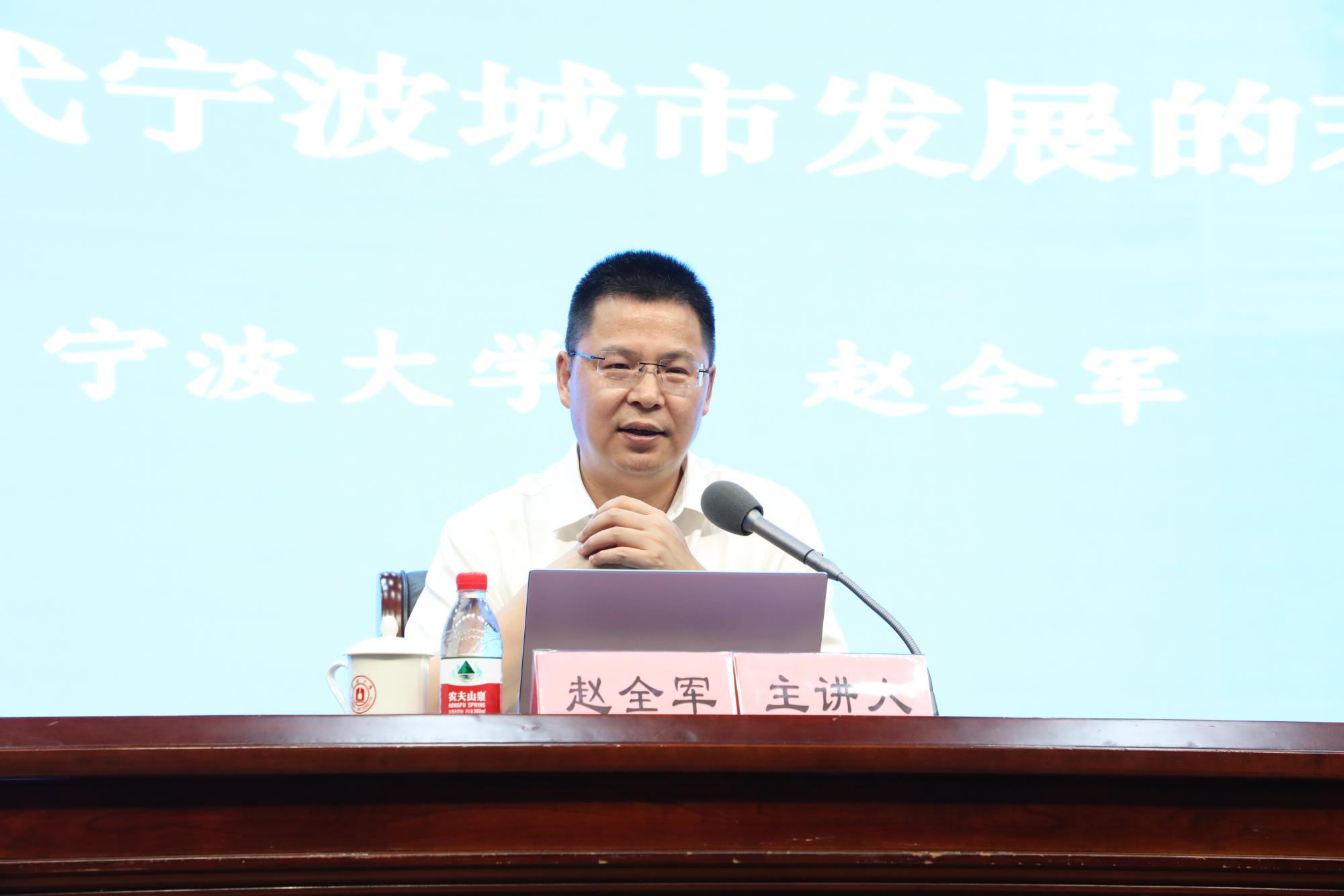 赵全军从宁波的基本情况出发,向同学们分别概括了陆上宁波、海上宁波、海外宁波的基本情况,让同学们对宁波有了全面的了解。同时,他针对宁波发展成效提出“四力宁波”的概念,分别从实力、活力、魅力、给力四个方面向同学们描绘了一幅别开生面的宁波画卷。随后,他揭示了宁波取得如此发展成效的原因,指出了集群发展、民营经济、体制优势、文化带动这四个的优势造就了现有的宁波。最后,他总结了宁波发展面临的创新策源能力不够强、“两头在外”的外向型经济面临极大不确定性、传统优势在弱化、规模体量缺优势等四大难题,并创造性地提出了宁波新发展新思路的四大抓手。
