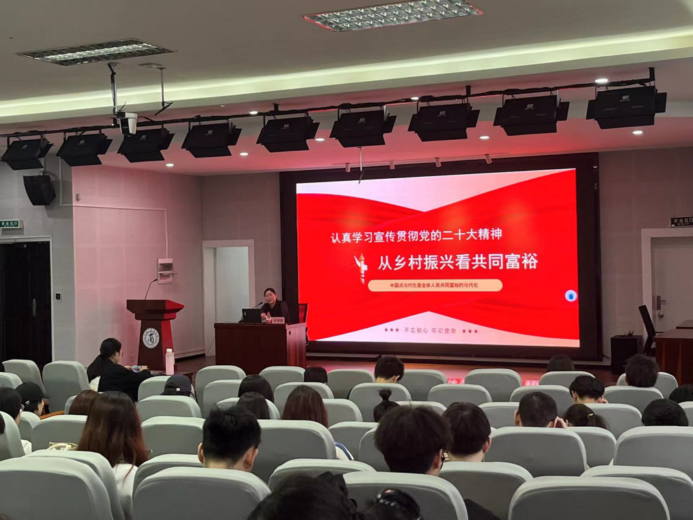 5月17日下午,百家乐策略 马克思主义百家乐策略 副教授于丽丽为百家乐策略 110余名师生讲授关于“学习贯彻二十大精神:乡村振兴和共同富裕”的形势与政策课。