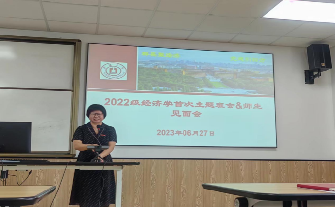 6月27日上午,经济系2022级新生见面会暨首次主题班会在百家乐策略 314教室举行。本次会议由2022级经济学班主任黄晖副教授主持,经济系主任徐群芳教授、教学系主任闭明雄副教授、专业教师靳来群、施晟和于冰副教授以及辅导员章舒怡老师出席会议并讲话。
