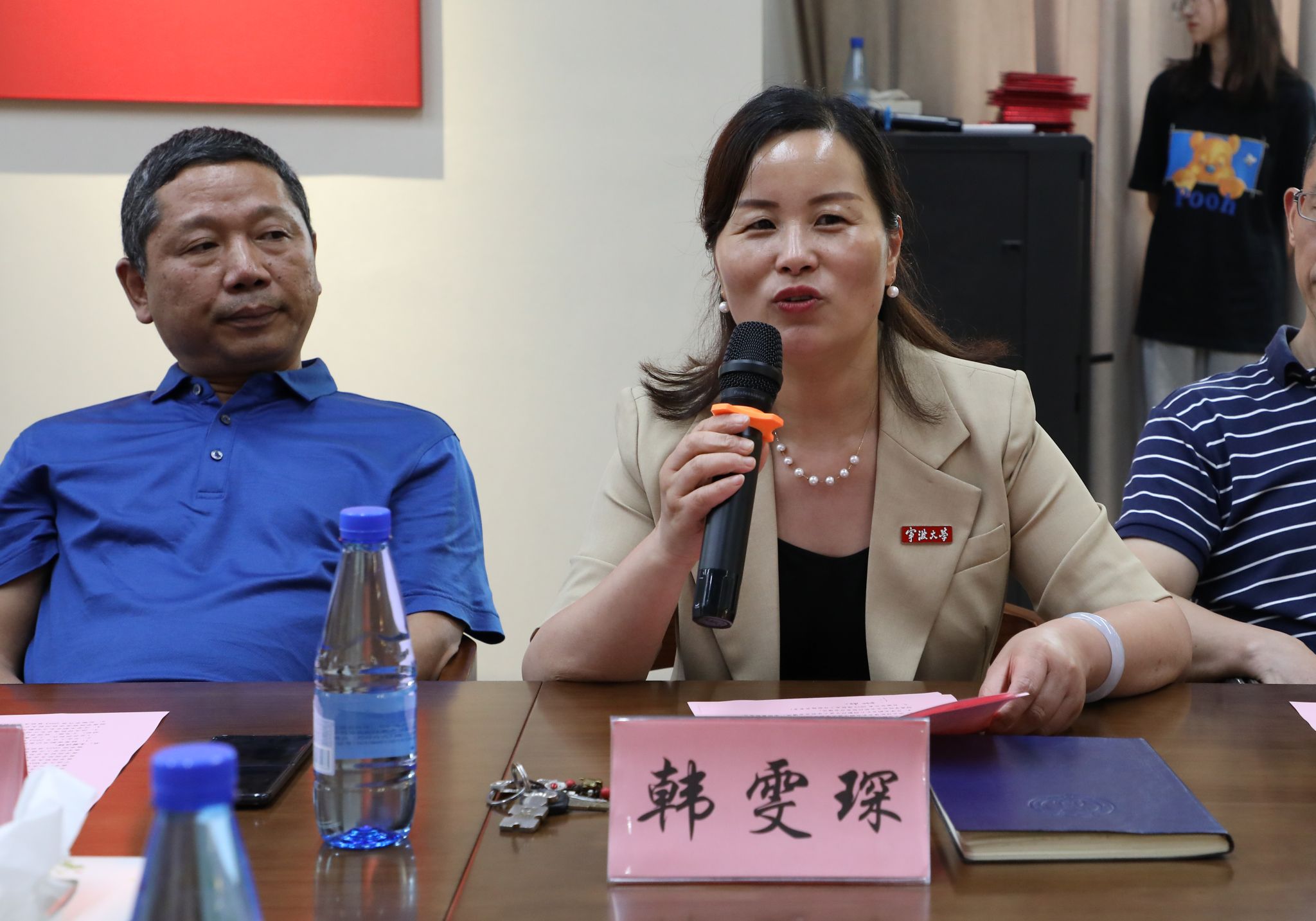 韩雯琛发表讲话。她向受聘的校友工作联络员表示祝贺,她希望大家认真履行校友工作联络员职责,继续扮演好桥梁纽带的角色,继续关注母校母院的发展。同时她也希望毕业生们能把自身的发展融入到祖国和社会服务中去,为中华民族伟大复兴贡献自己应有的贡献。
