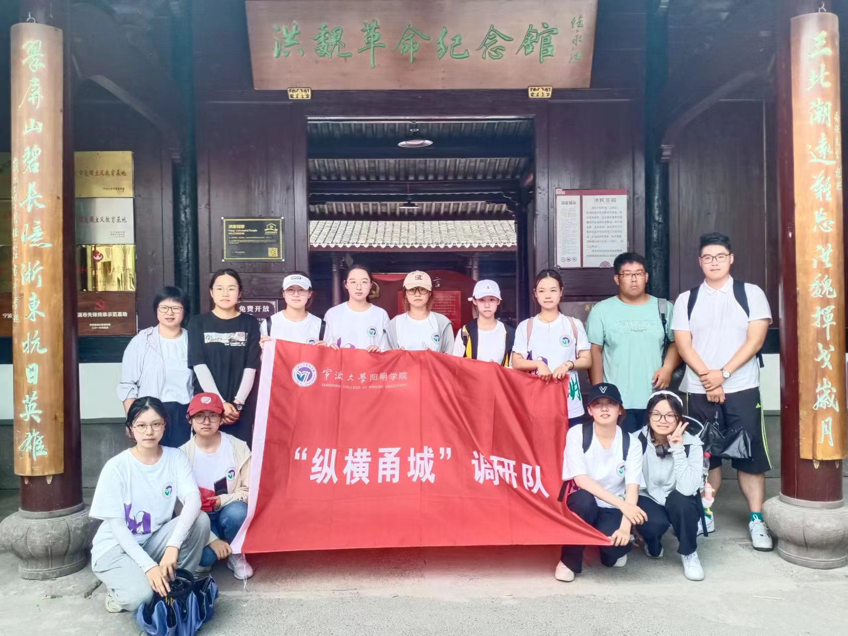 实践队走访了慈溪市掌起镇洪魏村,洪魏村被认定为2019年度浙江省善治示范村,2020年入选第六批浙江省历史文化名镇名村街区名单。洪魏村曾是抗日战争中期新四军浙东游击纵队主要驻扎地之一,红色底蕴深厚,同时村内又有大量的历史文化古迹,人文景观丰富,风景秀美。依托于丰富的人文资源,洪魏村将红色旅游发展与现代农业、生态林业等规划有效对接,形成与鸣鹤古镇养生游、方家河头村山水游错位竞争又有机统一的红色旅游景点。魏洪村干部与实践队伍举行了座谈会,村干部们耐心地给同学们讲解魏洪村的发展经验和成就,志愿者热心地引领同学们参观洪魏革命纪念馆和革命旧址,讲解洪魏村的历史和革命事迹。