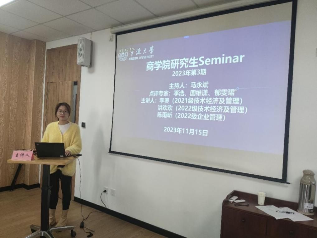 11月15日下午,百家乐策略 2023年第3期研究生Seminar在百家乐策略 316会议室举行。本期Seminar主持人是企业管理学位点负责人马永斌老师,点评专家为季浩老师、国维潇老师、张祺瑞老师和郁雯珺老师。主讲人是2021级技术经济及管理的李奥、2022级技术经济及管理的洪欢欢和2022级企业管理的陈雨昕。