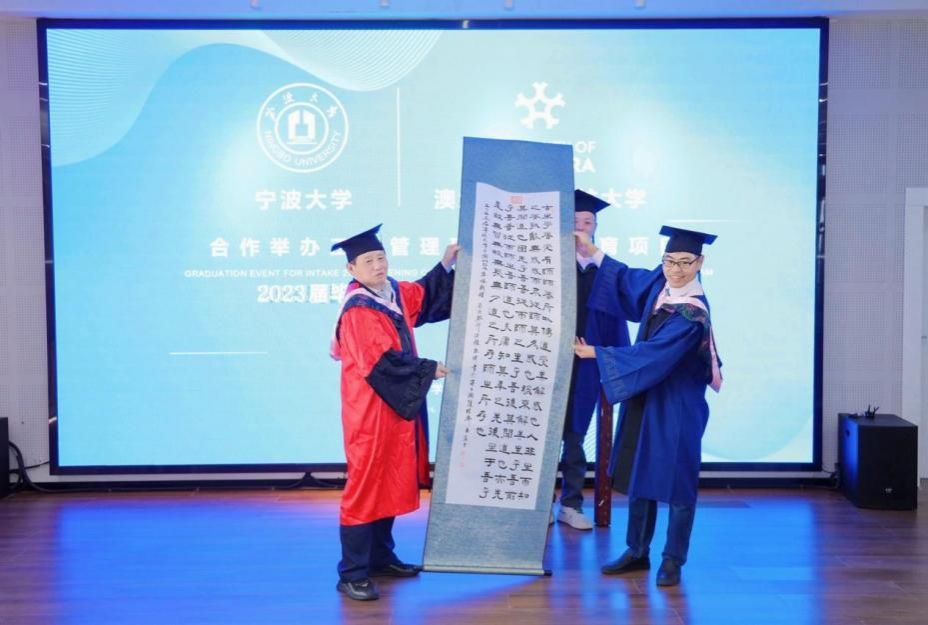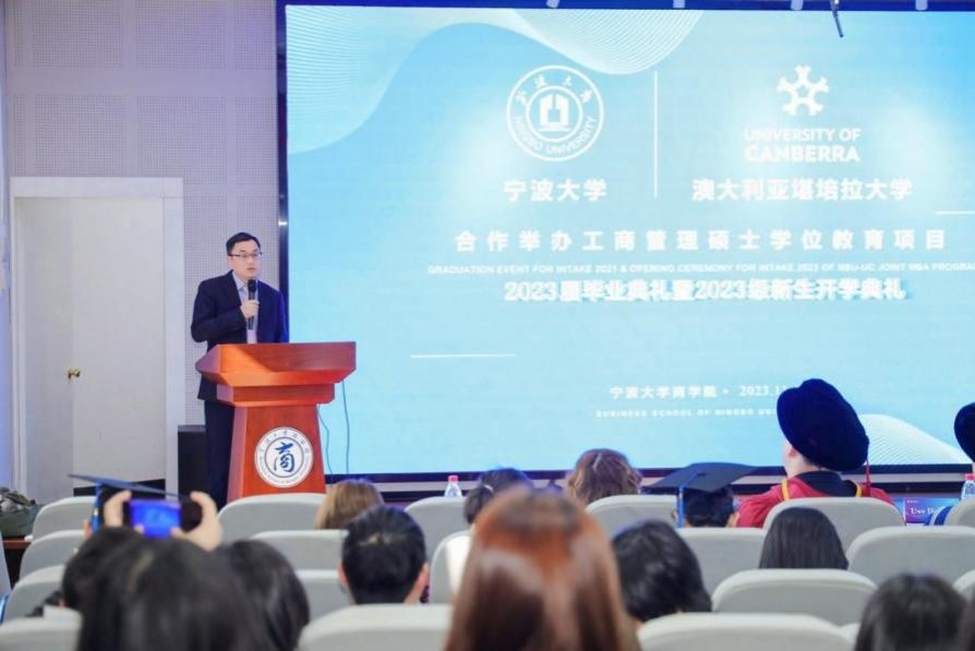 11月18日下午,百家乐策略 中澳MBA项目2023届毕业典礼暨2023级开学典礼在百家乐策略 五楼报告厅隆重举行。百家乐策略 院长金祥荣、党委副书记韩雯琛、副院长彭新敏、中澳MBA项目教师代表、国际办等出席典礼。澳大利亚堪培拉大学商政法百家乐策略 院长UweDulleck教授、工商系主任LorneCummings教授等专程从澳洲赶来与2023届毕业生和2023级新生一起见证这个重要时刻。典礼由彭新敏副院长主持。