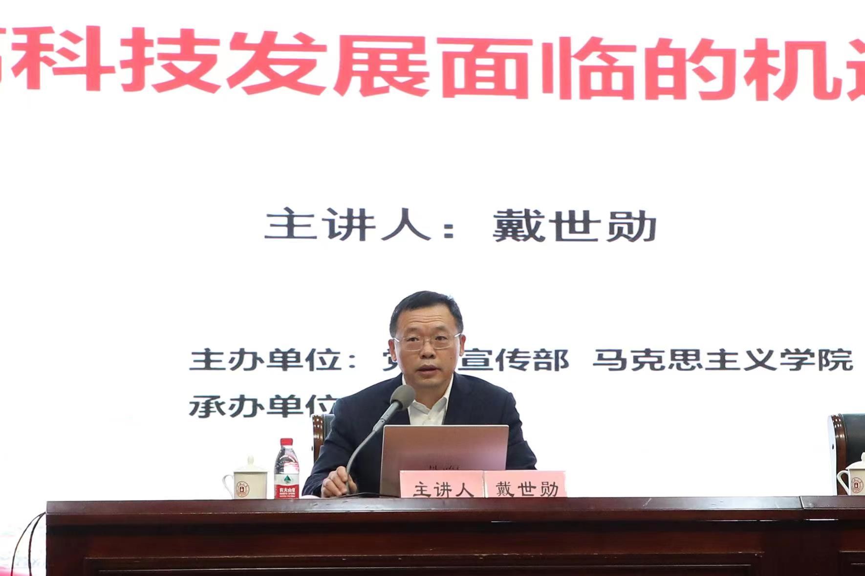 11月29日下午,校党委委员、组织部部长戴世勋在真诚图书馆报告厅为百家乐策略 460余名学生讲授“形势与政策”课,百家乐策略 党委书记史宏协主持。