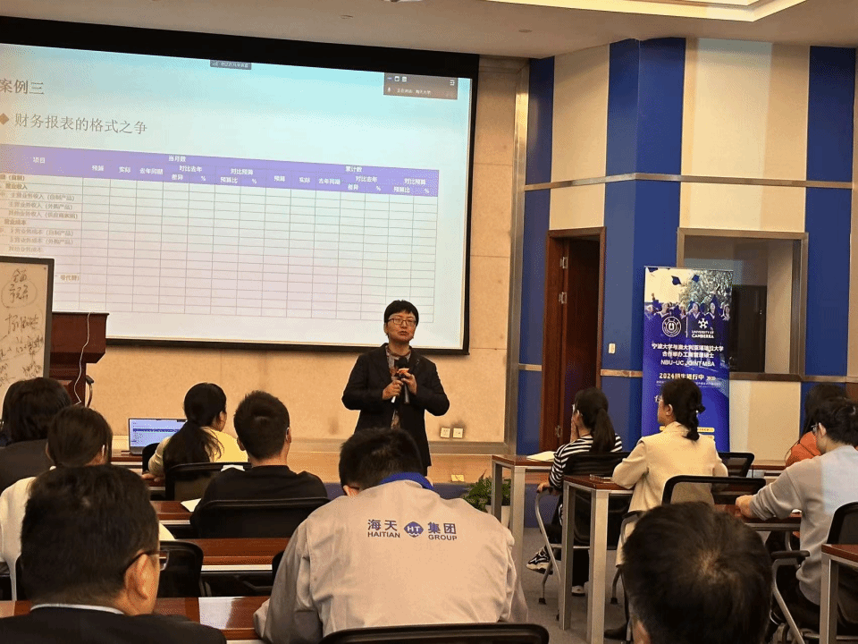 黄惠琴副教授将一堂生动有趣接地气的MBA课程送到了海天教育产业园。70多名海天管理与财务人员济济一堂,聆听了这堂《业财融合实践与财务转型》课程。中澳MBA校友及项目新申请人20余人在线参与了此次课程。